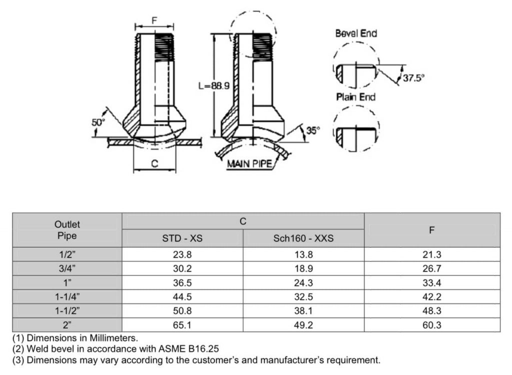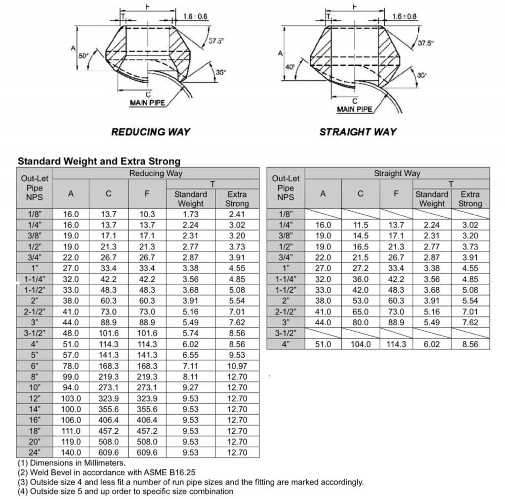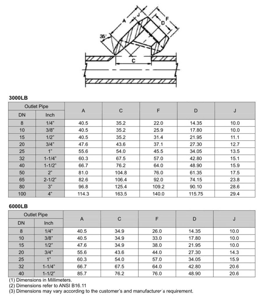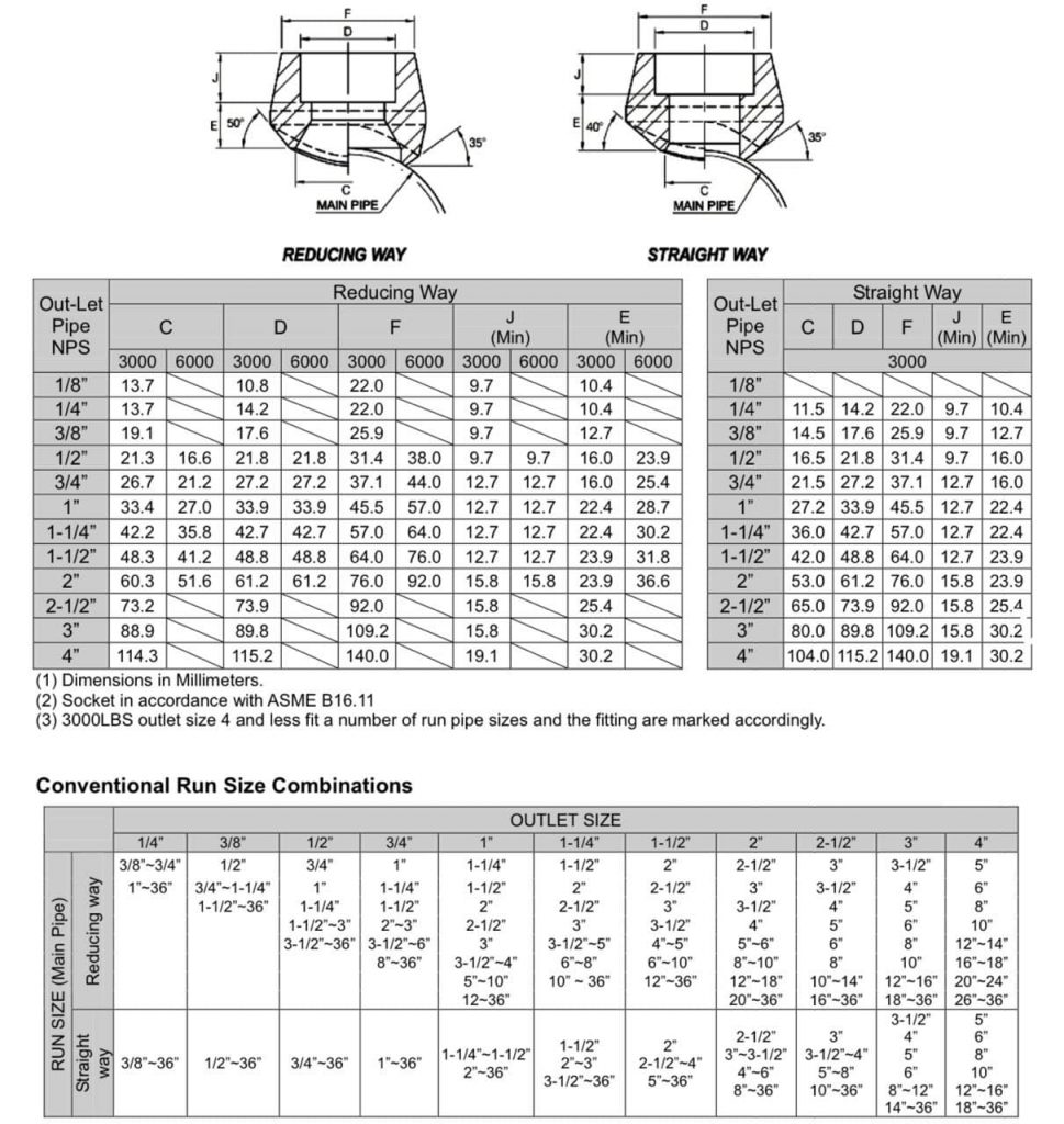Forged Olets (Weldolet, Threadolet, Sockolet, etc) are used to create an outlet from a run pipe (the “header size”) to a branch pipe (the “outlet size”). Branch fittings are manufactured by forging steel and may have welded or threaded connections