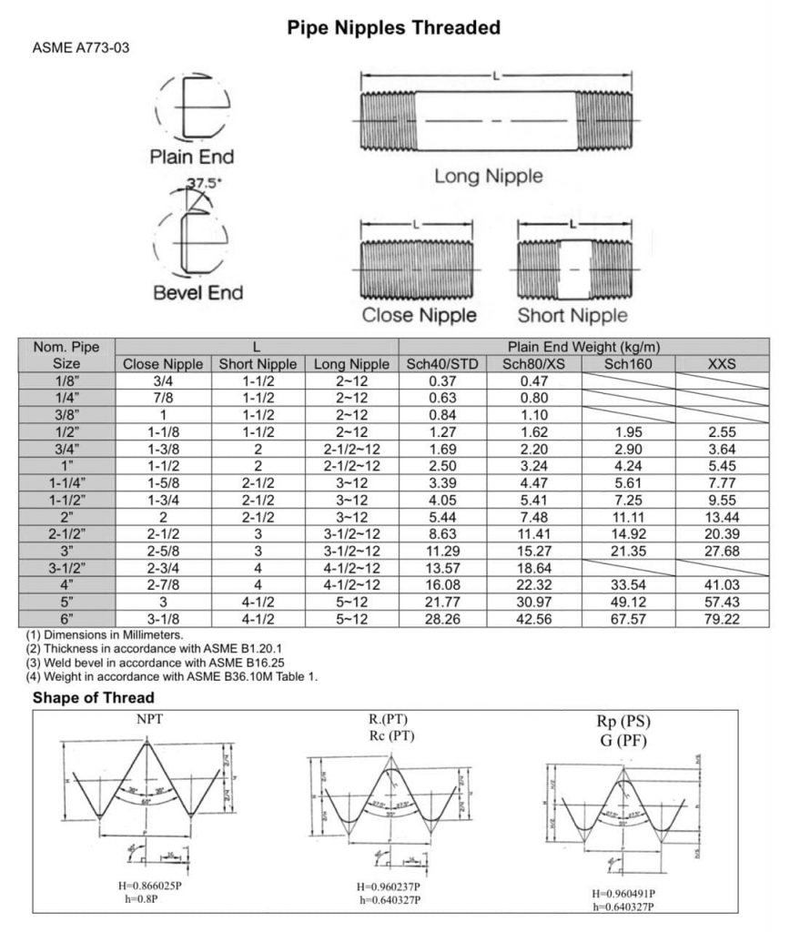 In plumbing and piping, a nipple is a fitting, consisting of a short piece of pipe, usually provided with a male pipe thread at each end, for connecting two other fittings.
